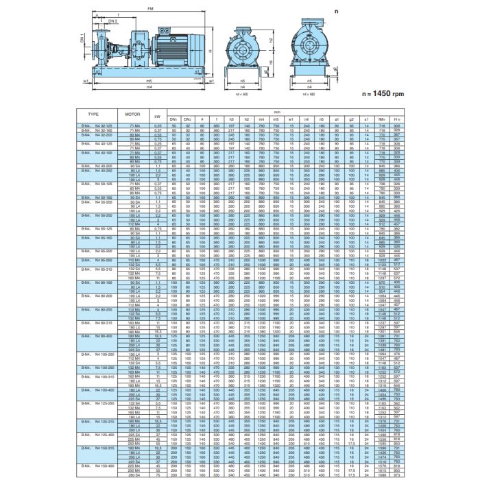 Rated speed of rotation (50 Hz): N = 2900 rpm. ; N4 = 1450 rpm.