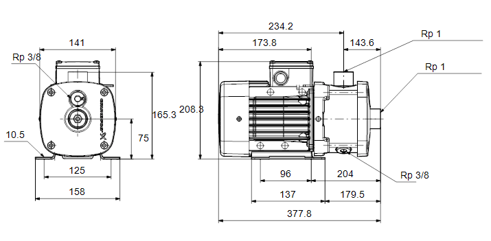 Compact, reliable, horizontal, multistage, end-suction centrifugal pump with axial suction port and radial discharge port. The pump is self-priming and can create a suction lift of up to 4 metres. Pump materials in contact with the liquid are in stainless steel. Pipework connection is via internal Whitworth pipe threads, Rp1.