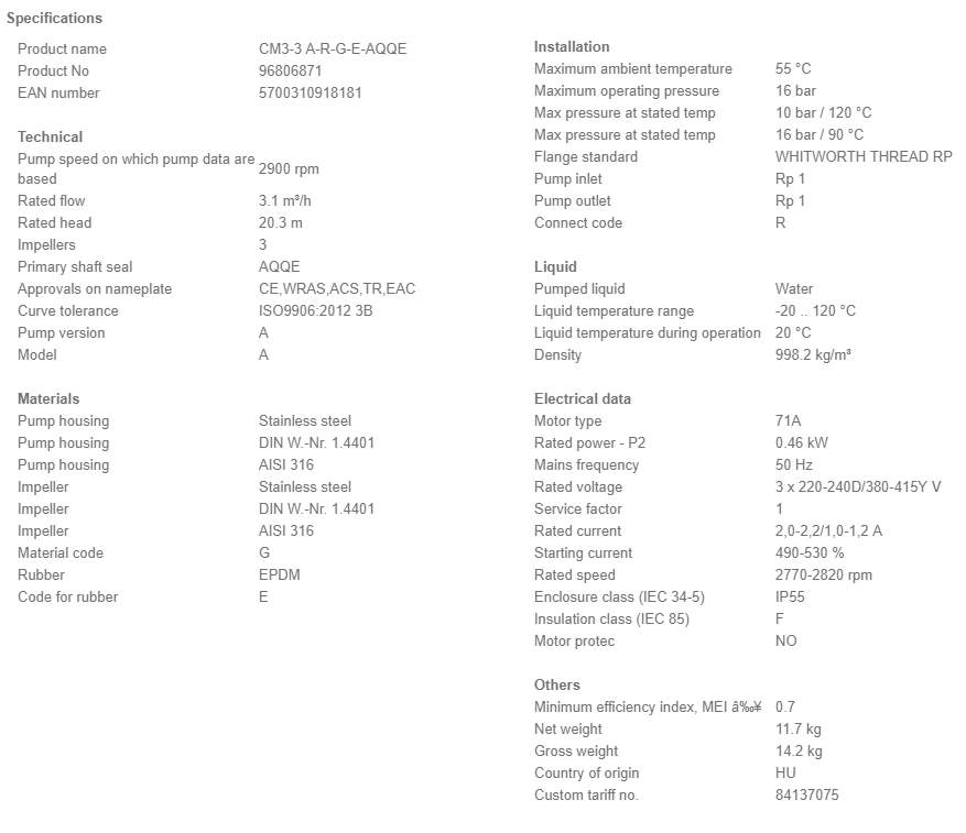 | Manufacturers | Grundfos |