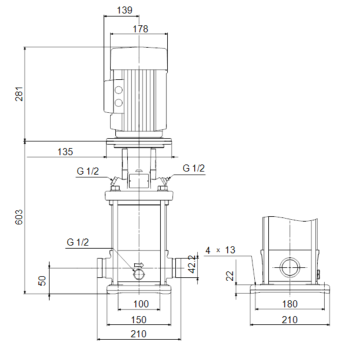 The pump is fitted with a 1-phase, fan-cooled asynchronous motor.