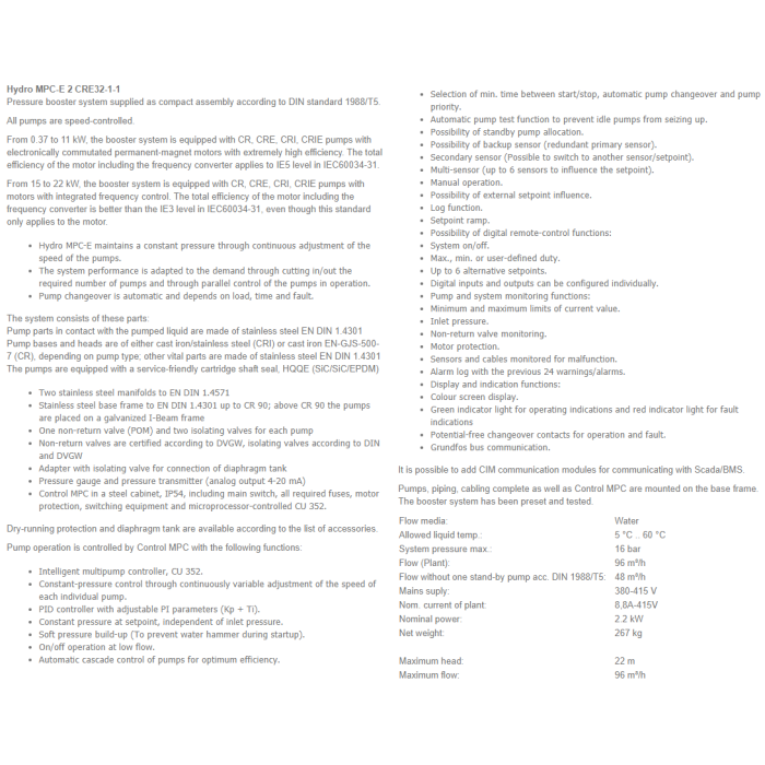 Grundfos Hydro MPC-E CRE32-1-1 (415v) Booster Set