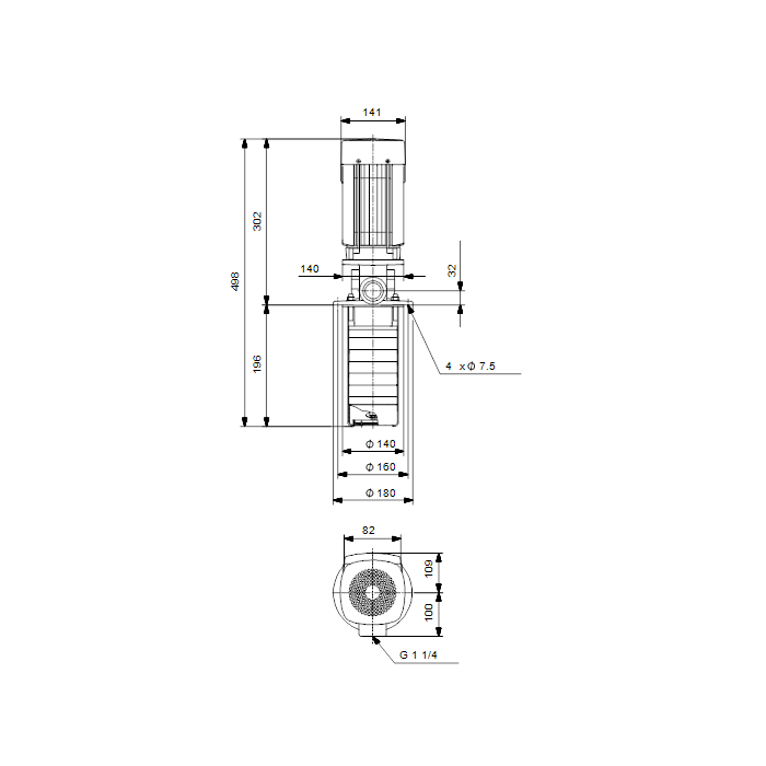 Multistage, immersible, self-priming, centrifugal pump for vertical installation in tanks etc. The pump head and base are in cast iron – all other wetted parts are in stainless steel. The pump has the following characteristics: