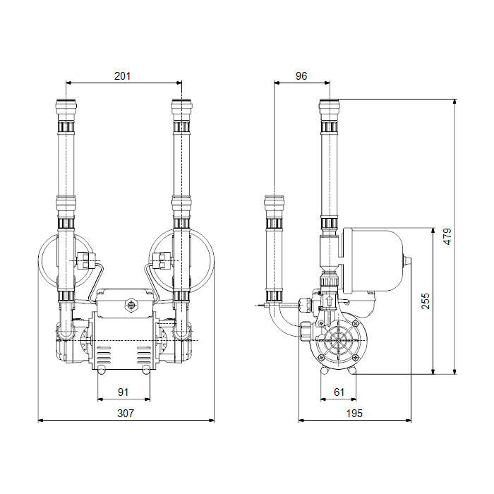 Grundfos STR2-1.5 CN Twin Impeller Universal Regenerative Shower Booster Pump (x4 Hoses Inc.) - 98950219