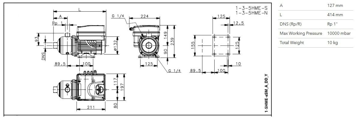 Lowara 1HME05S03M02VBE Variable Speed Horizontal Multi-Stage Pump With E-SM Drive 240V