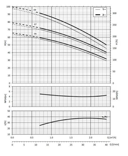 - plug and pump solution thanks to built in capacitor and motor protection for single phase