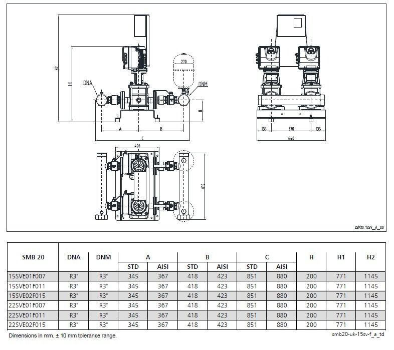 Lowara SMB20/15SVE01F007/2/UK Twin Vertical Pump Booster Set 240v - 1003100150