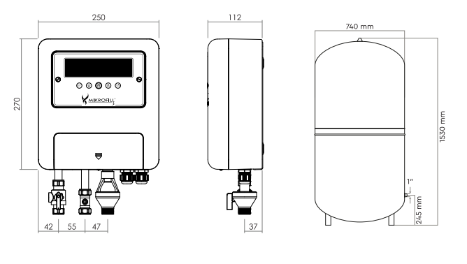 The Mikrofill 600/2 is an extremely compact and convenient sealed system pressurisation package. Comprising the Mikrofill 3 advanced ‘direct-type’ pressurisation unit capable of cold fill pressurising a system up to 4.7 bar, 2 MikroPro 600 litre (6 bar) expansion vessels and a 1” quick fit service valve, the Mikrofill 600/2 is suitable for a range of LPHW/CHW applications.