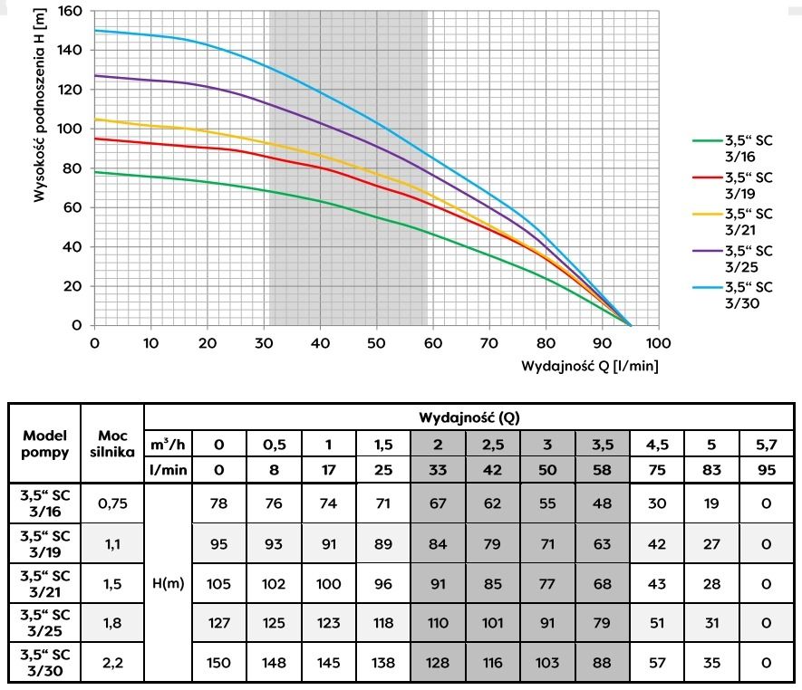 The 3.5SC submersible pump, with centrifugal design of the hydraulic part, is designed for pumping clean, cold, fresh water from deep boreholes and other reservoirs.