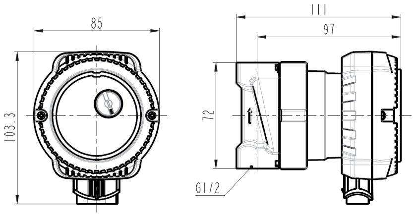 The ECWU.12-1.2 pump is designed to force circulation in domestic hot fresh water systems where the water temperature does not exceed 95°C. The pump is designed to pump water free of abrasive solids and fibrous impurities. The water must be free of mechanical impurities. Pumping water with mechanical impurities may damage the pump.
