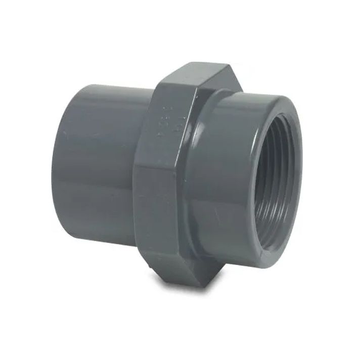 The Profec Adaptor socket, made out of PVC-U, has a glue socket/glue spigot x female thread connection and a maximum pressure of 10 bar is available in a wide range of sizes. All glue connections are according to EN-ISO 1452-3 and female thread according to EN-ISO 228.
