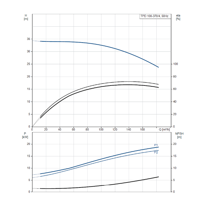 Grundfos TPD 100-370/4 A F A BQQE Single Stage Twin Head In-Line Pump with 4 Pole 415V 3Ph 50Hz, 18.5kW Motor and flanged pump connections.