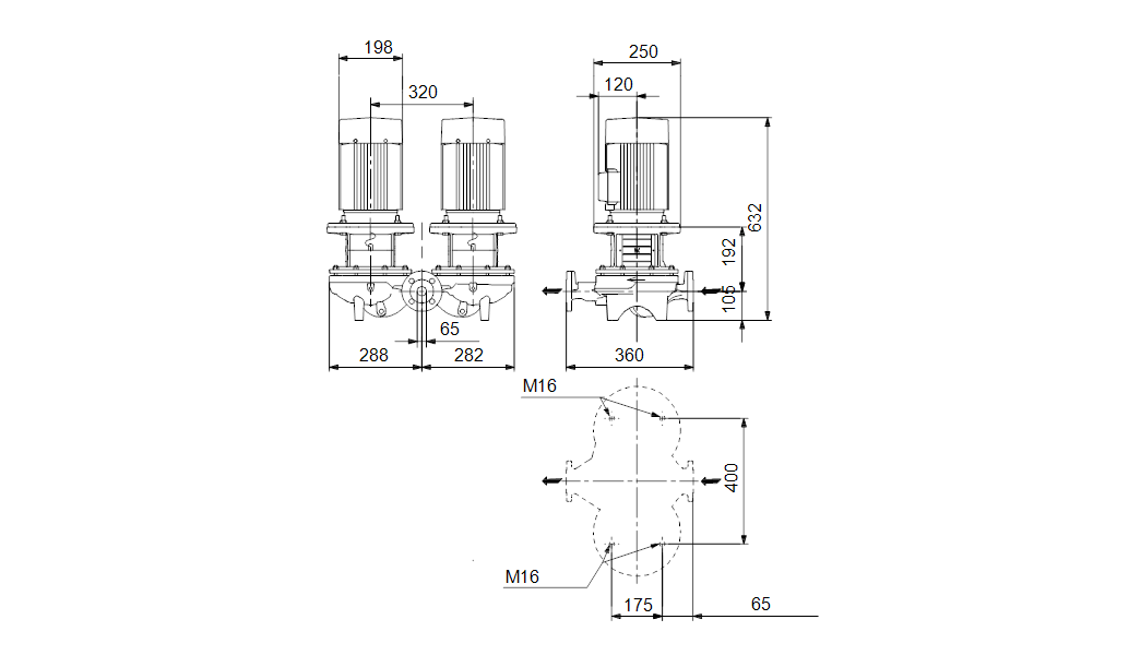 - in-line design with opposite suction and discharge ports enabling mounting in pipework or on a concrete foundation