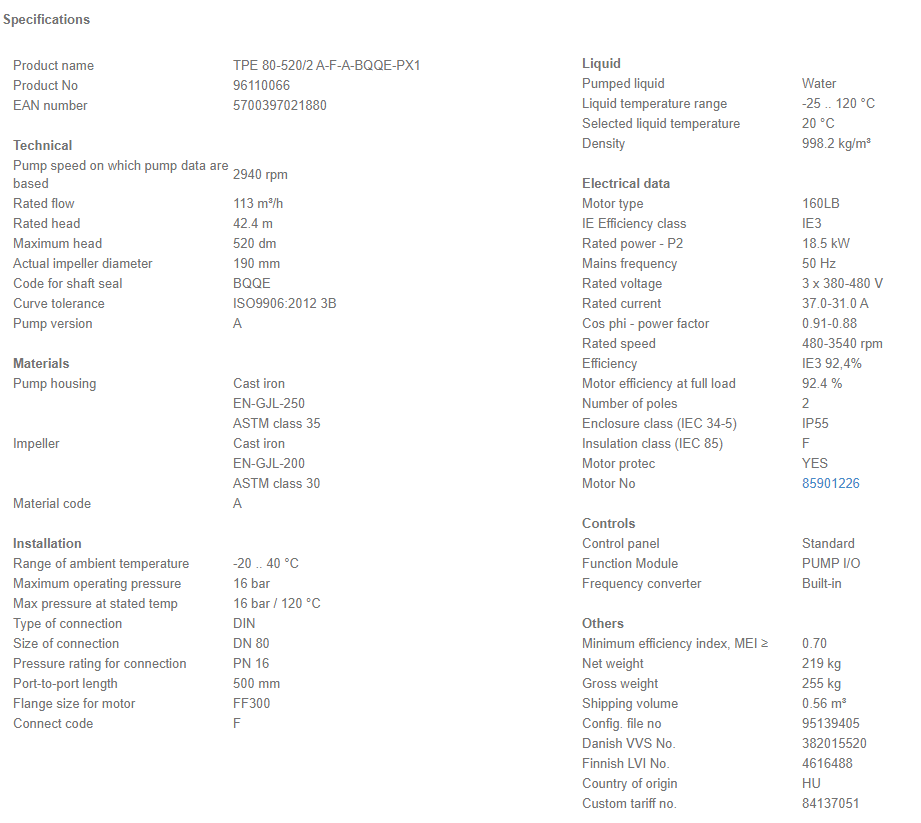 Grundfos TPE 1000 80-520/2 A F A BQQE Single Stage Single Head In-Line Pump with 2 Pole 415V 3Ph 50Hz, 18.5kW Motor and flanged pump connections.